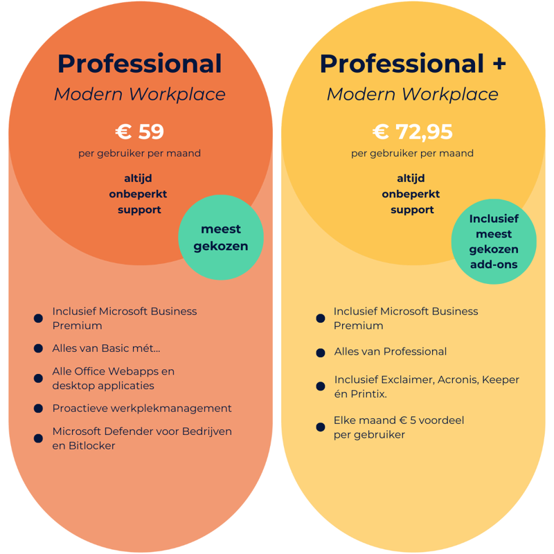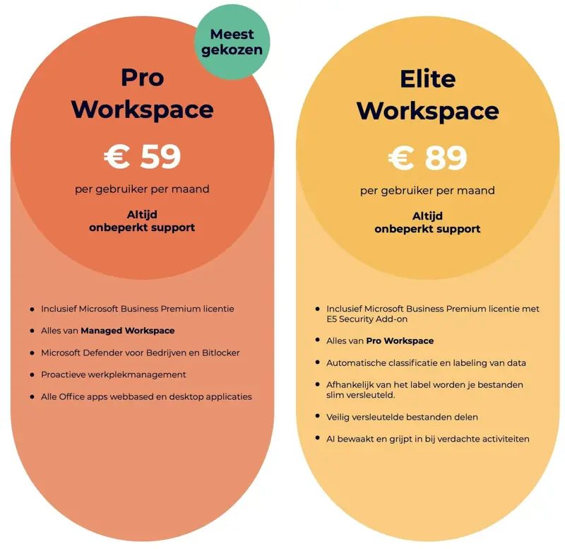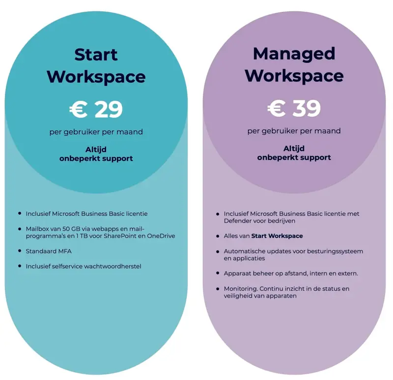 Onze digitale werkplek is altijd inclusief onbeperkt support van echte professionals.