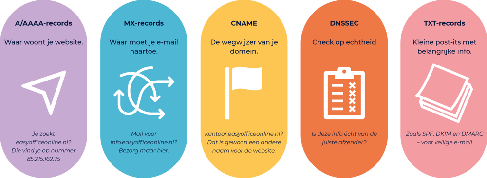 Internetverkeer is alles wat heen en weer gaat tussen jouw computer en de rest van de wereld. Of je nu een website bezoekt, mail verstuurt of een bestand downloadt. Het zijn allemaal digitale pakketjes die via servers en kabels hun weg vinden. DNS wijst ze de juiste route. Een IP-adres is het unieke nummer van een computer of server op het internet. Zie het als het huisnummer achter je domeinnaam. DNS zorgt dat jouw domeinnaam naar dat adres wijst, zodat alles op de juiste plek aankomt. Simpel toch? Dat is Easy.