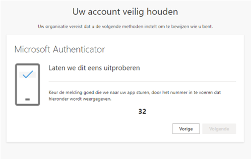 2.5 Keur de melding goed, die naar de Autenticator-app is gestuurd, door het weergegeven nummer in te voeren